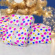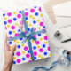 Os pontos azuis, cor-de-rosa e amarelos sobre um fundo branco farão todos os seus pacotes divertir-se!