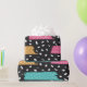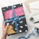 Este papel de empacotamento moderno e na moda apresenta um padrão abstrato ousado de pontos geométricos e listras coloridas sobre fundo preto. O design é perfeito para adicionar um toque de talento contemporâneo ao seu invólucro de presentes e, com certeza, impressiona seus amigos e família. Feito com papel de alta qualidade, este papel de embalagem é durável e fácil de usar.