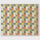 Papel de enrolamento num impressão geométrico moderno do século Médio de pontos gigantes, numa grelha de nove cores de coordenação - tons de cinzas/cinzas escuras a pálidas, esticados, castanhos, amarelo-ouro e laranja-mandarina, num fundo de cinza/cinza médio