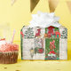 Poodle Dog Natal sentada fora de casa decorada com coroa de Natal, árvore de Natal é uma ideia perfeita de presente de Natal para amantes de cachorros.