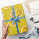 Uma fatia de fruta de limão amarela, bonita e colorida, de uma pintura original do artista Sacha Grossel. Esta grande fruta do estilo pop é amarela e muito brilhante e colorida contra um fundo personalizável. Quirky e original.