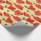 Um rolo de Giftwrap chic, com Poppies de Campo Escarlate em um fundo amarelo Ouro; de uma colagem de papel pintada manualmente por Judy Adamson este design é parte da coleção 'Campos Poppy' Posh & Painterly.