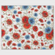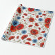 Papel De Presente Poppies Elegantes de Lembranças Azuis, Vermelhas e