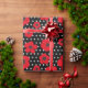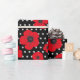 Embalagem de presente de papoila vermelha contemporânea. Papoila vermelha escura, sobre fundo preto e branco de bolinhas.