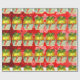 Boas festas dos Sandy Beach mornos de sua praia tropical favorita da ilha. Palmeira decorada com enfeites de natal e luzes, com uma prancha retro que inclina contra a árvore de Natal na parte dianteira um por do sol sobre o oceano. O fundo vermelho da cor do feriado de tartarugas e do hibiscus havaianos de mar de Honu floresce.