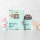 Esse papel de embrulho de presente mágico e caprichoso apresenta um tema de floresta encantado. Uma imagem de uma porta de fada em um pequeno jardim de cogumelos é colocada no fundo, com uma fada flutucando sobre ela. Várias flores e cogumelos são colocados ao longo do fundo. O fundo é um padrão desbotado. Um nome de exemplo e uma saudação de Feliz Aniversário são impressos acima do jardim de fadas, que você pode personalizar para incluir seu próprio nome personalizado ou texto.
