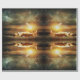 Sereia dormindo na areia sob uma lua crescente e estrelas. Matizes de ouro, verde, azul e âmbar. Muito elegante.