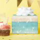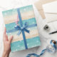 O design de papel de embrulho tropical festivo da Boutique Co. náutica apresenta palmeira e ícones de natal e luzes cintilantes colocados num oceano aqua bonito e num fundo de praia arenoso. A citação - "Areia é a Nova Neve" - é perfeita para qualquer um que se mudou para um local tropical ou está desfrutando de feriados tropicais neste inverno! #Tropical #GiftWrap #PalmTrees #FloridaWinter #Beach
