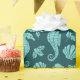 Este papel de embrulho de Natal costeiro apresenta um padrão de aqua azul-brilho, cavalos-marinhos, conchas e galos-palha em fundo negro, para um design de férias de praia festiva.