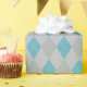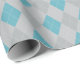 Este clássico papel de embrulho apresenta um elegante padrão de argila com diamantes em tons de prata e azul.