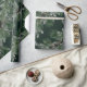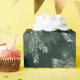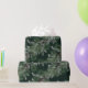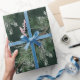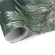 Um papel elegante e sofisticado de embalagem de férias, com pinheiro branco misturado com terras de galeria prateada na diagonal contra fundo verde-pinheiro.