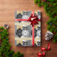 Lindos ornamentos de árvores de Natal prateadas e pretas com arcos pretos e dourados e listras de diamante de ouro elegantes papel de embrulho de Natal preto e dourado.