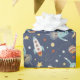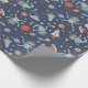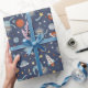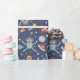 papel de envolvimento Espaço-temático com um teste padrão dos astronautas da preguiça que flutuam no espaço entre naves espaciais, as naves espaciais estrangeiras, os planetas, as estrelas de tiro, e as luas.