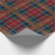 This design features a classic tartan or plaid pattern in rich, traditional colors like deep navy blue, dark green, and maroon red with hints of yellow or cream, creating a festive and cozy aesthetic. Overlaid on the plaid is a repeating, grid-like pattern of brown leather straps with gold buckles, evoking the look of luggage, equestrian gear, or a secured trunk. The combination of the warm plaid and the strapped detail makes this a sophisticated and robust design, perfectly suitable for Christmas wrapping paper that suggests a feeling of tradition, quality, and rustic holiday charm.