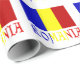 A Bandeira da Romênia é um tricolor vertical com listras azuis, amarelas e vermelhas. Este design apresenta a palavra ROMÊNIA sob a bandeira nas cores da bandeira. Compartilhe o papel de embrulho de presente com sua herança, também.