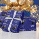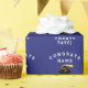 Presença de formatura criativa para a classe de "25 formando com boné de formatura preto com fita de ouro sobre fundo azul. Para personalizar editar texto para adicionar seu nome.
