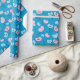 "Papel de embrulho Mr e Mrs Balões Presente de Casamento Azul Sem Costura" apresenta balões de casamento "Sr." e "Sra.", simbolizando amor e união, perfeito para presentes de chá de noiva ou dia do casamento.