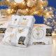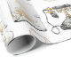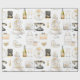 Papel de embrulho listrado apresenta magnólias, itens de presente de casamento preto, dourado e creme.