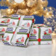 Velejamento criativo de plástico de presente de Natal com Papais noeis em um veleiro. Editar texto para adicionar nome.