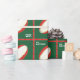 Design de embrulho de presente de Natal de Rugby com bola de rúgbi vermelha e branca em fundo verde. Para personalizar editar texto para adicionar nomes.