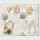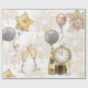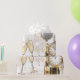 Véspera de Ano Novo ou presente de festa de Dia do ano novo com ouro em balões negros, fogos de artifício, óculos de champanhe e relógio. Ofereça aos seus convidados do partido ou a sua outra significativa com algo especial para celebrar o próximo ano. Dourado, preto, brilho dourado.