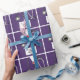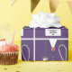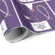 Embrulho de presente criativo para enfermeira com design de parabéns com ilustração de jaleco hospitalar roxo e estetoscópio. Edite o texto para adicionar o nome da enfermeira.