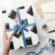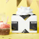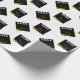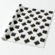 Papel de embrulho de presente de formatura criativo com padrão de design de chapéu de formatura preto e dourado da turma de formandos. Para personalizar, edite o texto para adicionar o nome dele ou dela e o ano.