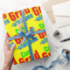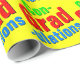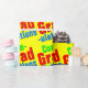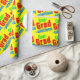Um papel colorido de embrulho com sulações de Con-Formando escritas em verde, vermelho e azul.