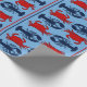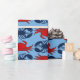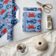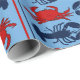 Papel de embrulho de presente náutico com caranguejo e padrão de lagostas. Vermelho e azul, cor masculina e design, é adequado para qualquer dia especial de cara. Papel de qualidade em um rolo com impressão de verão/vida marinha.