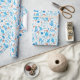 Papel de embrulhamento de presente moderno e bonito! Design apresenta folhagem azul congelada, flocos de neve e folhagem de inverno.