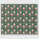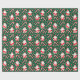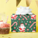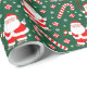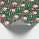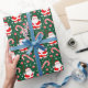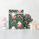 Papel de embrulho de Natal temático de beisebol com Papai Noel usando uma luva e balançando um taco de beisebol.