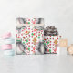 Papel de presente de Natal festivo com tema de beisebol ou decoração para festa de Natal com beisebol de arremesso rápido pousando no meio de doces e biscoitos de Natal. Doce!