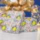 Brincadeiras de Natal criativas com softball e design de balas de Natal.