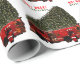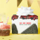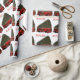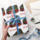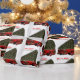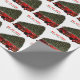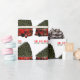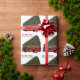 Embalagem de presente de Natal para bombeiros com Papai Noel e um motor de incêndio com uma árvore de Natal amarrada em cima.