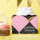 Embalagem de presente de graduação com design de boné preto e ouro criativo em fundo rosa. Editar texto para adicionar o nome do formando.
