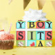 Brincadeira de presente e decoração de chás de fraldas de bebês criativos em blocos de brinquedos azuis, verdes, vermelhos e amarelos, incluindo beisebol e calçado de bebês.