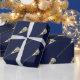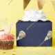 Folha de presente de lacrosse única ou decoração de festas com palito de lax e padrão de bola em fundo azul de marinho para jogador de lacrosse, festas, treinadores ou fãs de esportes de equipe.