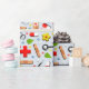 Folha de presente ou decoração de festas com temática médica criativa com material médico e com material de saúde e ilustração de flores para o médico, enfermeiro ou outro profissional de saúde.