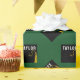 Boné de formatura preto e ouro sobre fundo verde. Editar texto para adicionar o nome do formando e o ano da classe.