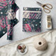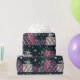 Presente de Natal retrógrado presente arco flocos de neve azuis cor-de-rosa de novo ano brilhando padrão de feriado cor-de-rosa