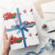 Design de presentes e hortelãs de Natal apresenta a imagem de presentes de Natal vermelhos e verdes apadrinhados com lábios de hortelã-pimenta contra fundo branco. Diversão e design festiva.
