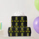 Este design de papel de empacotamento divertido, ousado, com tema de aniversário apresenta um grande número "8" com um padrão listrado amarelo e preto, juntamente com a mensagem "Feliz 8.º aniversário", e um nome editável. O fundo é preto colorido. O papel de embrulho temático de aniversário como este pode ser usado quando se dá um presente ou presente em comemoração do 8º aniversário de alguém. [~Z0000381]