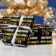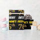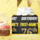 Este design de papel de embrulho apresenta uma mensagem como "FIRST-NAME'S 76th BIRTHDAY!", com o "76º" a ter uma aparência falsa/imitada de cor dourada, e com o nome e "BIRTHDAY" numa fonte divertida e ousada. O nome pode ser personalizado e o fundo é preto colorido. Um papel de embrulho como este poderia talvez ser usado para embrulhar presentes de aniversário que são dados a alguém em comemoração de seus setenta e seis anos. [~Z0000203]