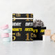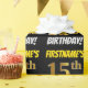 Este design de papel de empacotamento apresenta uma mensagem como "PRIMEIRO-ANIVERSÁRIO!", com o "15" a ter uma aparência falsa/imitada de cor dourada, e com o nome e "ANIVERSÁRIO" numa letra divertida e ousada. O nome pode ser personalizado e o fundo é preto colorido. Um papel de embrulho como este poderia talvez ser usado para embrulhar presentes de aniversário que são dados a alguém em comemoração do seu décimo quinto aniversário. [~Z0000203]