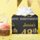 Este design de papel de embrulho apresenta uma mensagem como "48º ANIVERSÁRIO de Jessica!", com o "48º" tendo uma aparência de cor semelhante à de ouro falso/imitado. O nome pode ser personalizado e o fundo é preto. Poderia ser usado ao embrulhar presentes dados para o aniversário de alguém de 48 anos. [~Z0000177]