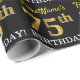Este design de papel de embrulho apresenta uma mensagem como "FirstName’s 75th BIRTHDAY!", com o "75º" a ter uma aparência falsa/de cor dourada. O nome pode ser personalizado e o fundo é preto colorido. Talvez possa ser utilizado quando se dá presentes para o setenta e cinco anos de alguém. [~Z0000177]