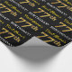 Este design de papel de embrulho apresenta uma mensagem como "First-Name’s 77th BIRTHDAY!", com o "77th" a ter uma aparência falsa/de cor dourada. O nome pode ser personalizado e o fundo é preto colorido. Talvez possa ser utilizado quando se dá presentes para o setenta e sete anos de alguém. [~Z0000177]