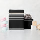 Papel de embrulho em branco com linhas metálicas horizontais tridimensionais sobre fundo preto puro. © Manhã 6