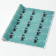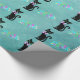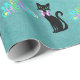 This wrapping paper roll is a teal colour with pretty black mid century cats wearing big pink bows and text Merry Christmas in bright colourful letters.