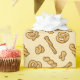 Pretzels e outros salgadinhos cozidos. Um padrão perfeito. Cor de fundo personalizada.
